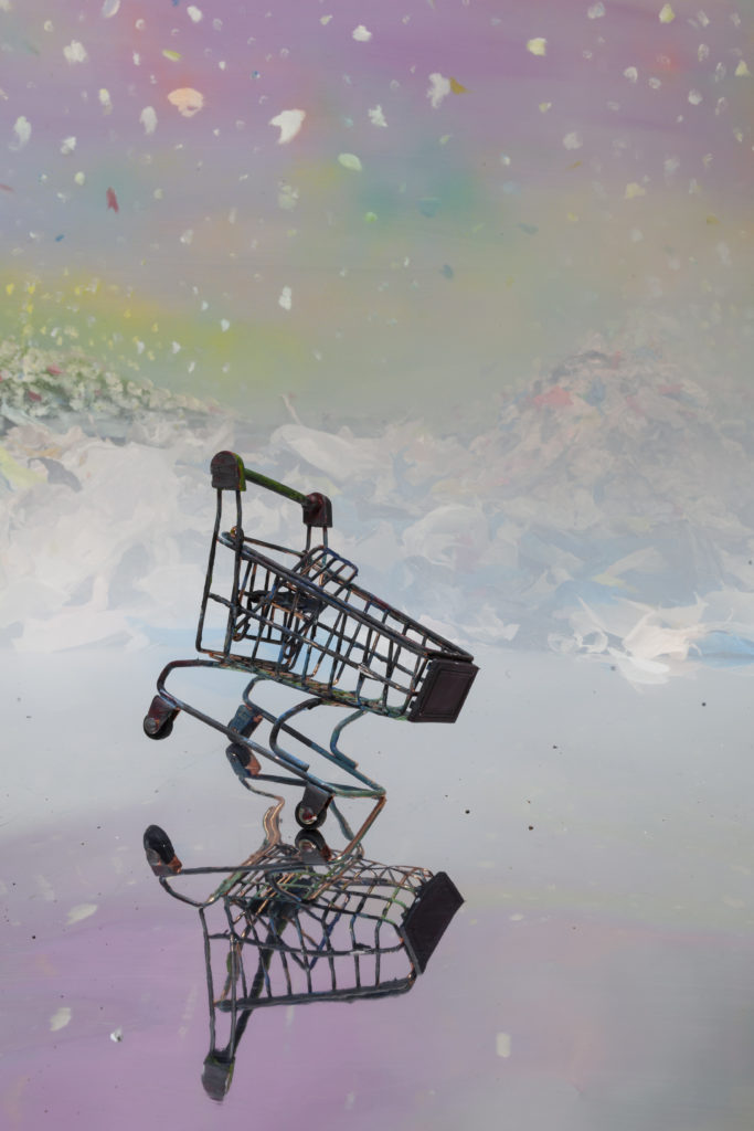 Lisanne Hoogerwerf graduated as a painter, but after a while she found photography more suitable to express herself in. She first makes models using all kinds of materials such as wood, sand, glue or paper. She uses paint and chalk to give colour and create atmosphere. She instinctively knows how to build up an image, e.g., by dramatically positioning an object or contrasting it with the background. Hoogerwerf uses exciting compositions in her landscapes. And her colour combinations look attractive, almost picturesque. In this way she constructs her scenes before a photo is taken of the result.