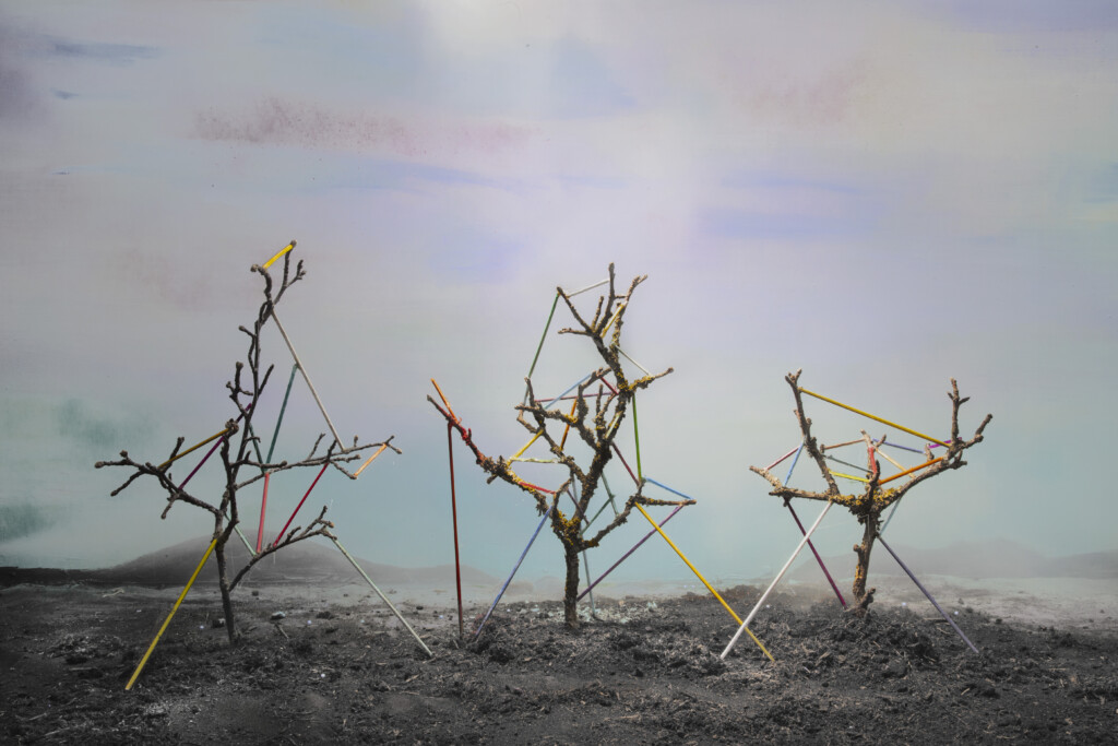 In the photographic work of Lisanne Hoogerwerf, we see lonely places, strange landscapes or desolate events. Surprisingly, thanks to the lighting and the use of colour, the atmosphere is not unpleasant. Rather, it arouses the curiosity to investigate what you see: e.g., a high structure with a tent cloth on an empty, demarcated field, where a concert may have just been going on that has ended abruptly, or a party where no one came. Lisanne Hoogerwerf graduated as a painter, but after a while she found photography more suitable to express herself in. She first makes models using all kinds of materials such as wood, sand, glue or paper. She uses paint and chalk to give colour and create atmosphere. She instinctively knows how to build up an image, e.g., by dramatically positioning an object or contrasting it with the background. Hoogerwerf uses exciting compositions in her landscapes. And her colour combinations look attractive, almost picturesque. In this way she constructs her scenes before a photo is taken of the result.