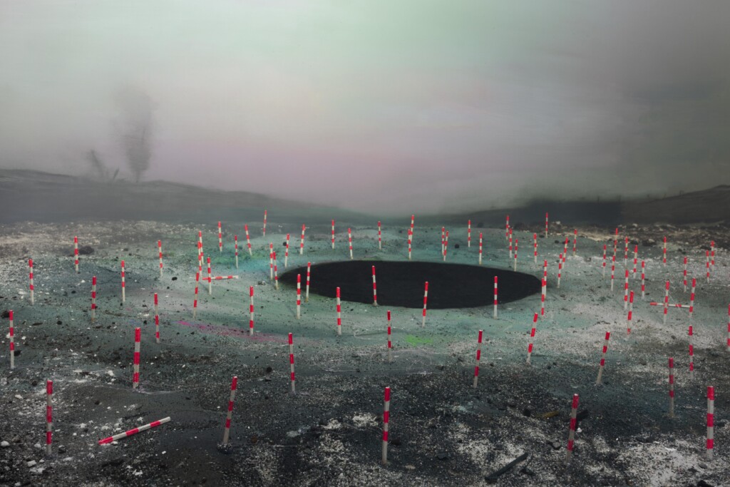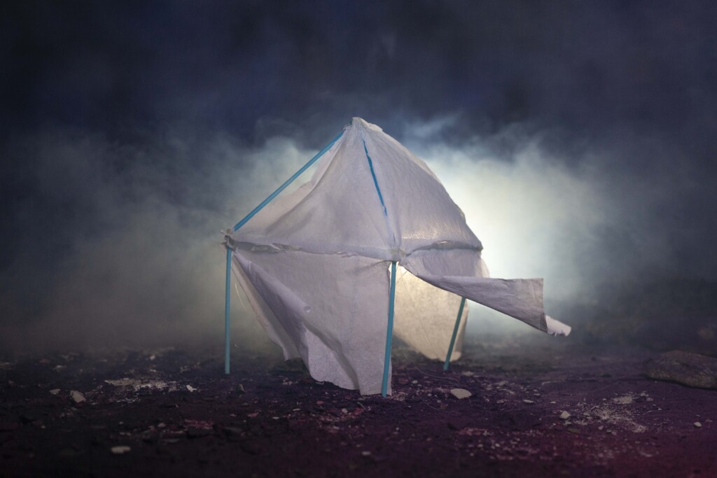 In the photographic work of Lisanne Hoogerwerf (NL, 1987) we see lonely places, strange landscapes or desolate events. Surprisingly, thanks to the lighting and the use of colour, the atmosphere is not unpleasant. Rather, it arouses the curiosity to investigate what you see: e.g., a high structure with a tent cloth on an empty, demarcated field, where a concert may have just been going on that has ended abruptly, or a party where no one came.