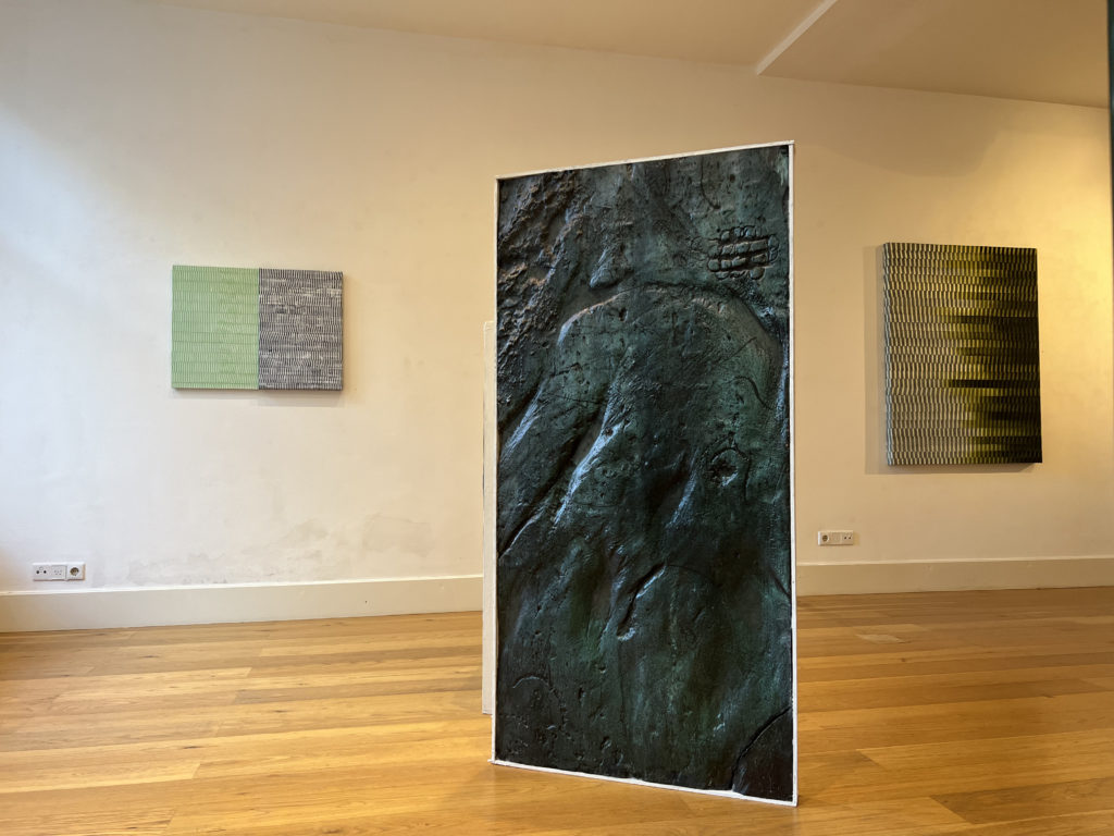 In deze expositie met drie kunstenaars wordt de uitstraling van hun kunstwerken hoofdzakelijk bepaald door de materiaalkeuze. Ook de textuur van het oppervlak lijkt te willen verleiden om het aan te raken en te voelen. De tactiliteit van het materiaal vormt als het ware de rode draad van deze expositie.