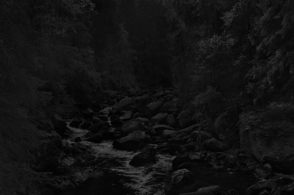 Vincent van Gaalen reist naar de laatste donkere gebieden van Europa, waar de nachtelijke duisternis (nog) niet verdrongen is door kunstmatig licht. Te midden van deze duisternis – omringd door niets meer dan zijn fotoapparatuur, een tent en wat rantsoen – fotografeert Van Gaalen onze menselijke afwezigheid. Bladeren, stenen, water en lucht vangen het licht van de maan en sterren. Het diepste zwart doemt op, contouren worden versterkt. In deze donkere wereld maakt ratio plaats voor verbeelding en ontneemt het duister de controle. Het landschap blijft nauwelijks zichtbaar -maar voelbaar des te meer.