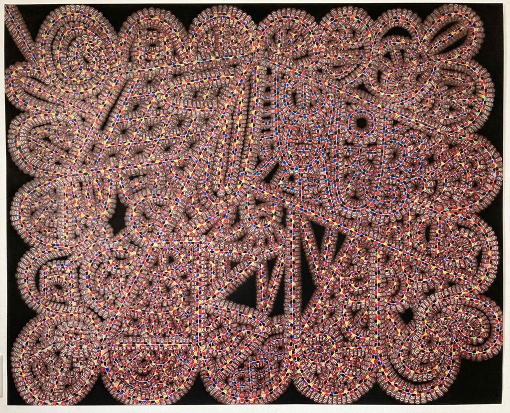 Haar nieuwe werken tonen herhalende, kleurrijke en abstracte patronen met veel rondingen en schaduwwerking. De fascinerende vormen lijken op een aaneenrijging van weefsels, die schijnen te vibreren, te ademen als levende organismen. Ze zijn onbestemd en tegelijkertijd ook vrolijk makend. Qua afmeting doen ze zich groter voor dan ze zijn. Soms verraadt een poëtische titel haar binnenwereld. In alle tekeningen van Van Woudenberg kun je ongestoord dwalen en maakt zij je deelgenoot van een ongebreidelde verbeelding.