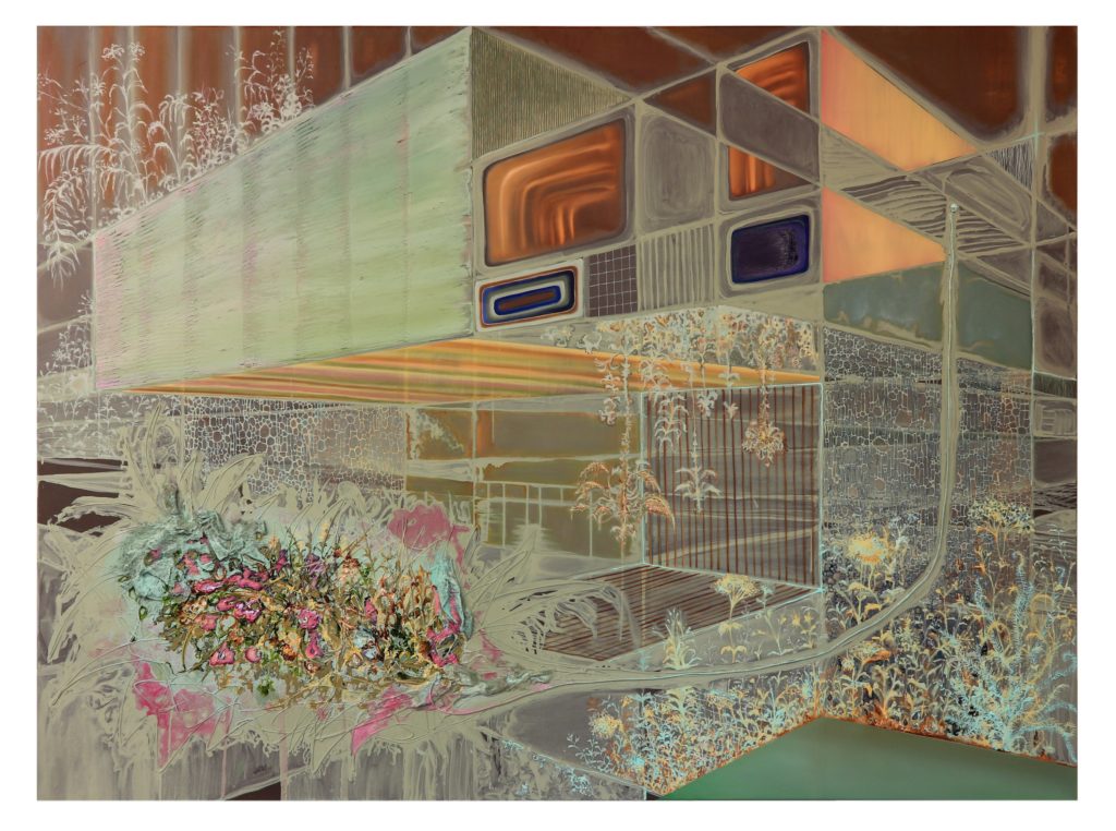 Bas Wiegmink schildert met veel contrasten in een uitbundig, romantisch kleurenpalet, soms zelfs fluorescerend. Zijn filmische en vrije manier van schilderen maakt het kijken blijvend interessant. In zijn eerdere werk groeien bomen en planten wild tussen gebouwen door. Uitbundige flora heeft daar alle ruimte ingenomen met soms nog resten van menselijk leven. In de nieuwe schilderijen van Wiegmink blijft de flora met krachtige overtuigende toetsen en in heftige kleuren aanwezig, maar ondergaat de natuur een schijnbare ordening. Ze zweeft nu, als het ware gevangen in een alomvattend grid, in allerlei wisselende structuren van oneindigheid. Zoals een escapist onderzoekt hij de vorm om zich steeds te kunnen vernieuwen, een contrast dat het dubbelzinnige verraadt van de werkelijkheid.