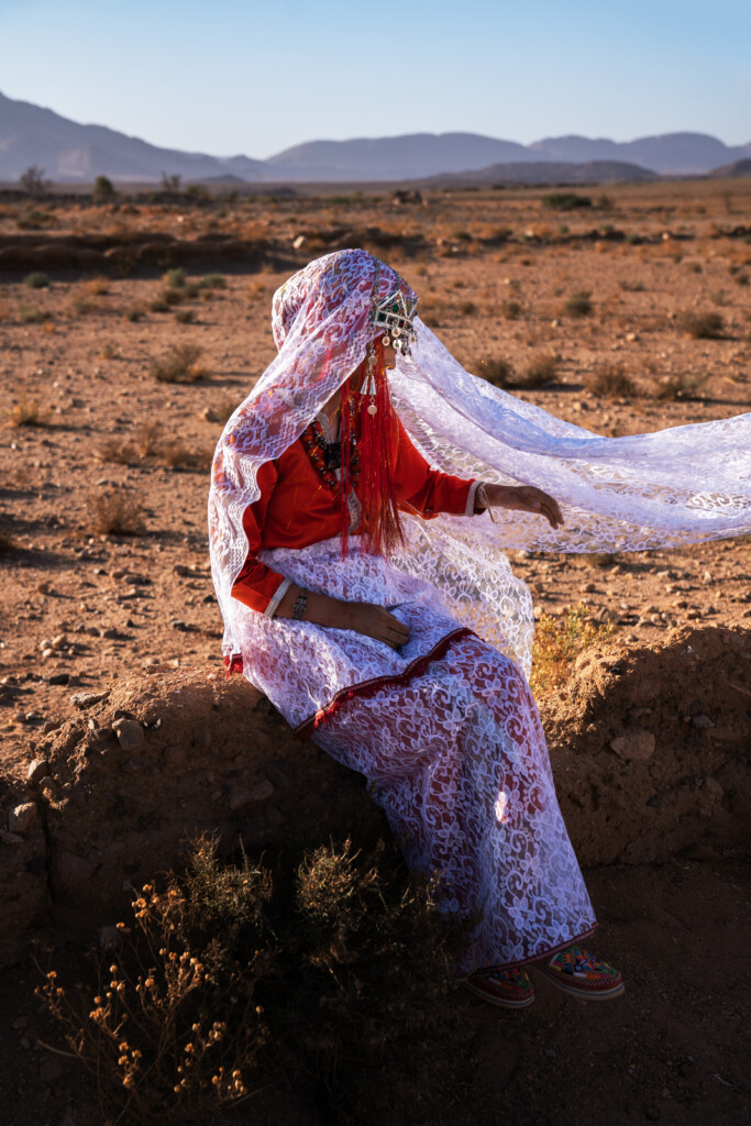 We zien in het fotowerk van Sabrina Charehbili vaak een weidse buitenruimte in de natuur, waarbij licht en donker sterk contrasteren. Haar personages in kleurrijke gewaden spelen met schaduw en beweging. Ze zijn soms gehuld in tapijten of staren in de verte. Haar werk is dromerig en feeëriek. Als kind van een migrant ontdekte zij een wonderlijke exotische omgeving die zij probeert te benaderen vanuit haar hedendaagse kijk naar de vrije wereld. Sabrina verstaat de kunst om in ieder beeld een nieuwe betekenis te introduceren zonder dat het geforceerd overkomt.