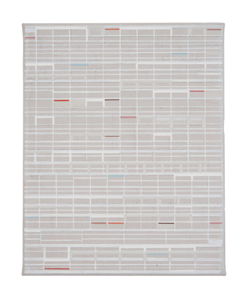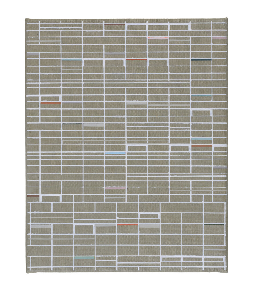De schilderijen van Inez Smit zijn opgebouwd uit allerlei lagen die zich tot elkaar verhouden. Lagen die, verschillend qua lijnvoering, vlakken of kleurenpalet, elkaar soms volgen of die elkaars pad kruisen, dan weer elkaar afdekken of vervloeien. Sommige ruimten zijn nauw, open en transparant, andere zijn groot en lijken massa te hebben. Daarbij kun je dwalen tussen voor en achter, alles is immers even belangrijk in het schilderij. Er is geen begin en geen einde. We menen een fractie te zien van een oneindig doorlopende ruimte met architectonische ritmes als motief. Smit begint met een eerste opzet en dat wordt tijdens het verdere proces steeds onderbroken door een nieuw uitgangspunt, waarbij de weerslag van het vorige uitgangspunt zichtbaar blijft. Er ontstaat dan volgens Smit een spannende ordening, welke niet voortkomt uit een vooropgezet plan maar uit het schilderen zelf. Net als je denkt een patroon of herhaling te ontdekken, blijkt dit maar schijn; met een afwijkende vorm, lijndikte of kleur, lijkt het ‘patroon’ te worden voortgezet met een andere insteek.